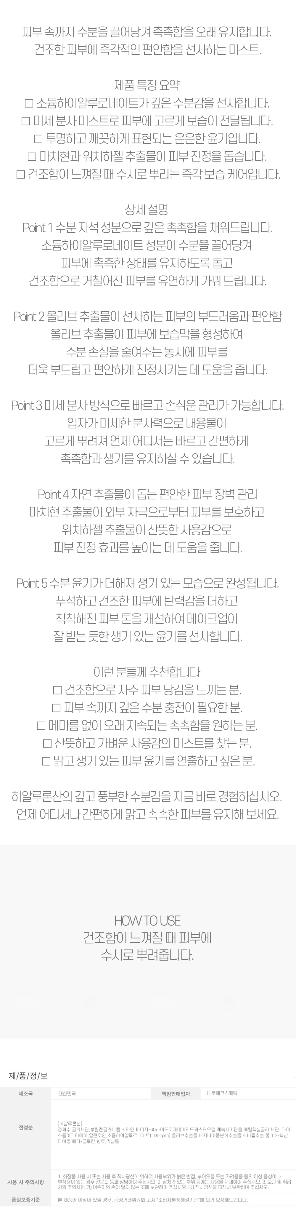깊은 수분을 담은 미세 분사 히알루론산 미스트 120ml