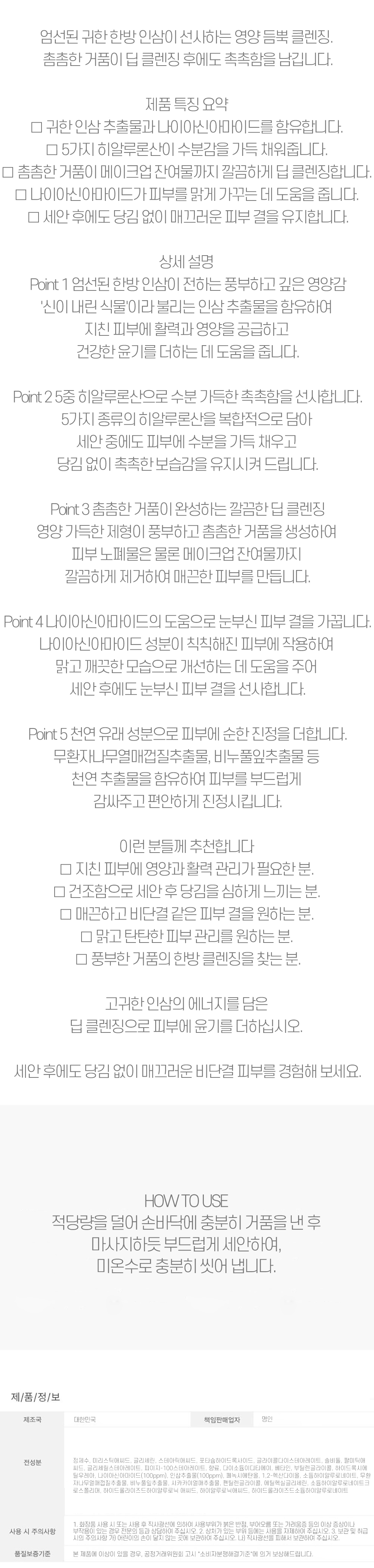 귀한 인삼의 지혜로 완성하는 비단결 클렌징폼 180ml
