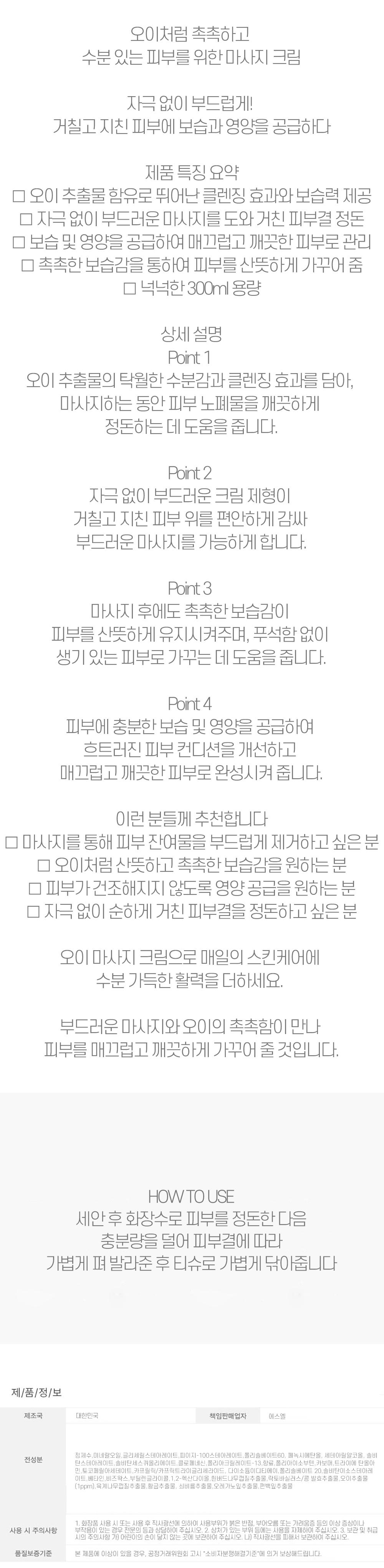 오이처럼 촉촉 수분있는 피부 위한 마사지크림 300ml