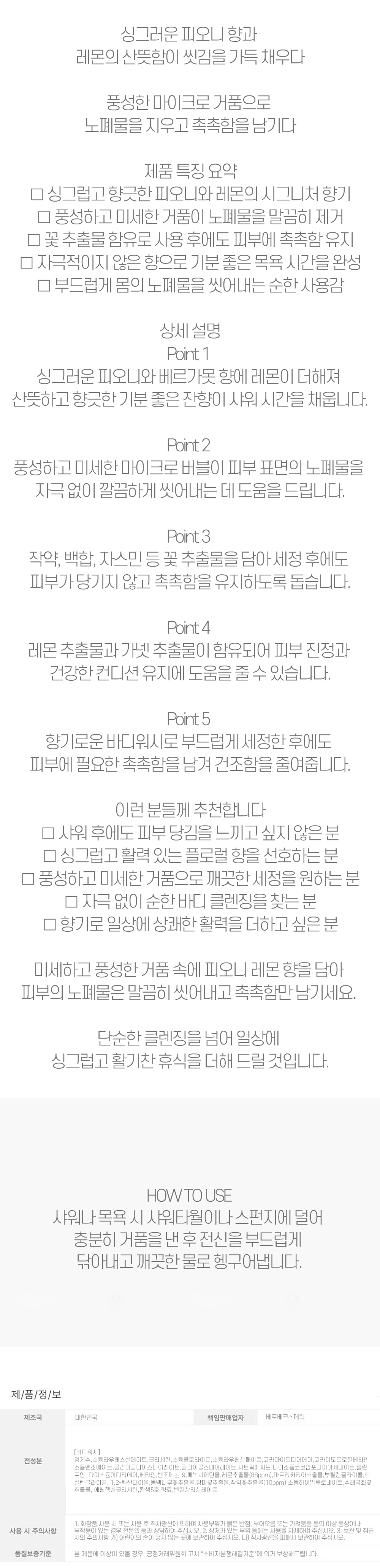 싱그럽고 향긋한 피오니 레몬의 향기 바디워시 800ml
