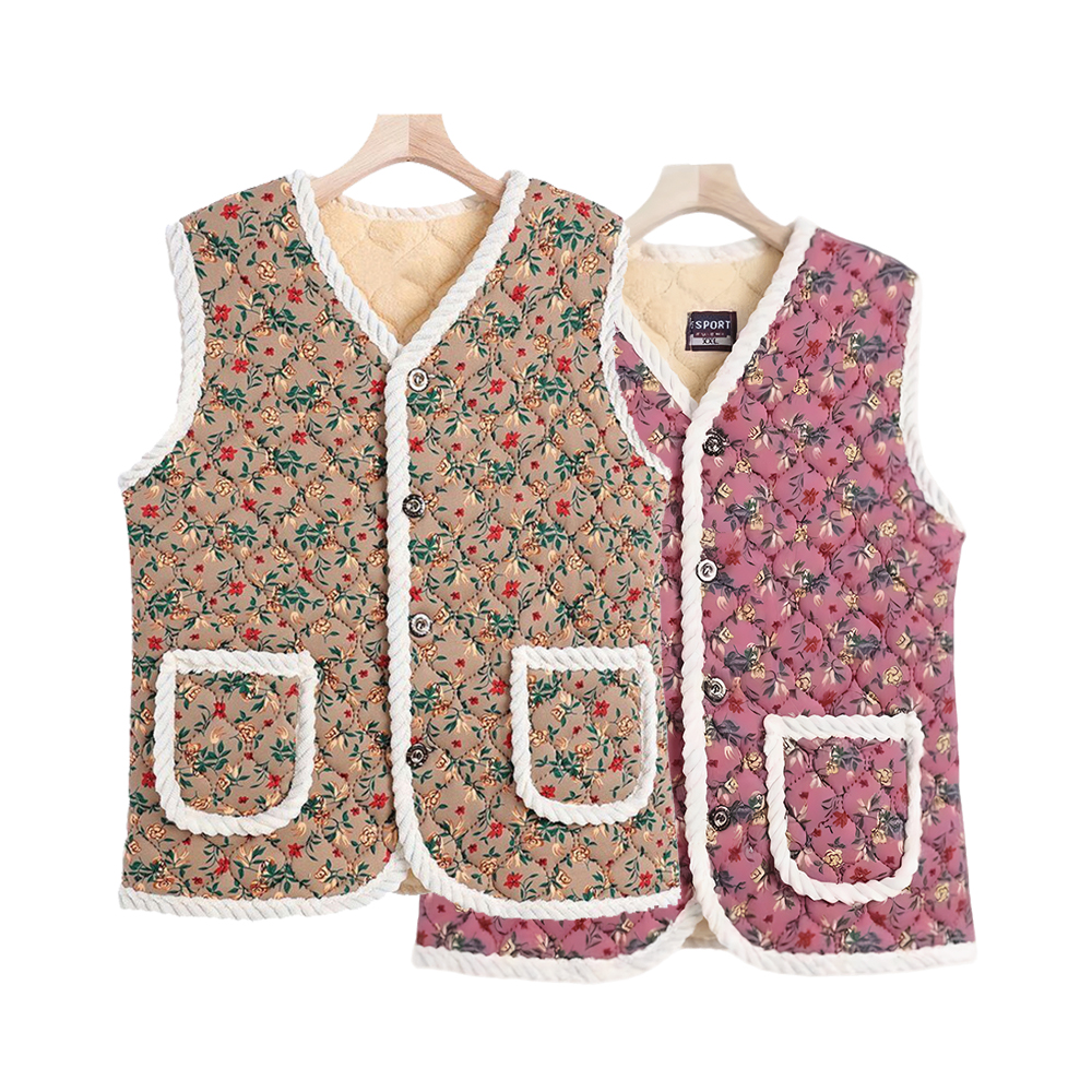 1+ 1 꽃 무늬 양 털 보온 방한 할머니 엄마 뽀글이 겨울 누빔 촌캉스 조끼