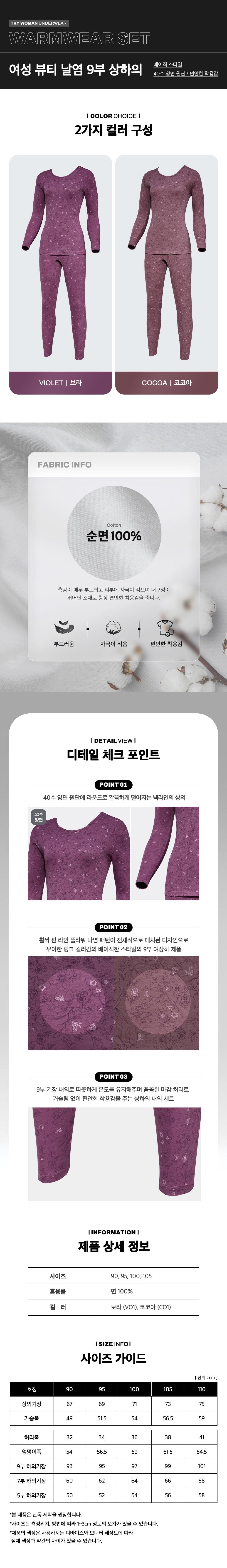 TRY 여성 40수 플라워나염 내복 여자 베이직내의세트