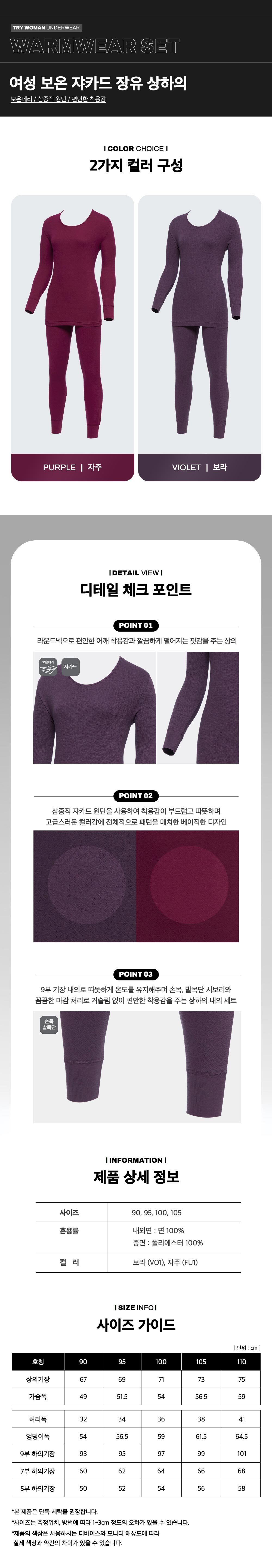 TRY 여성 보온 쟈카드 내복 여자 삼중직 내의 상하세트