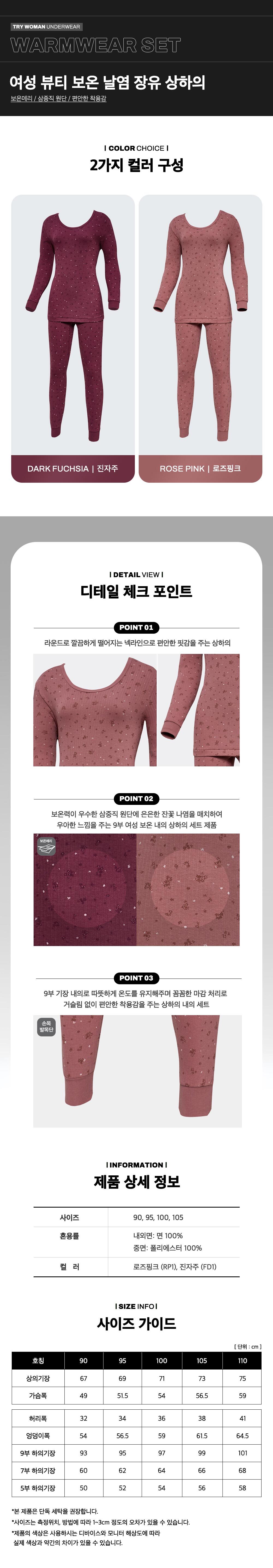 TRY 여자 뷰티 보온 날염내복 여성 삼중직 상하세트