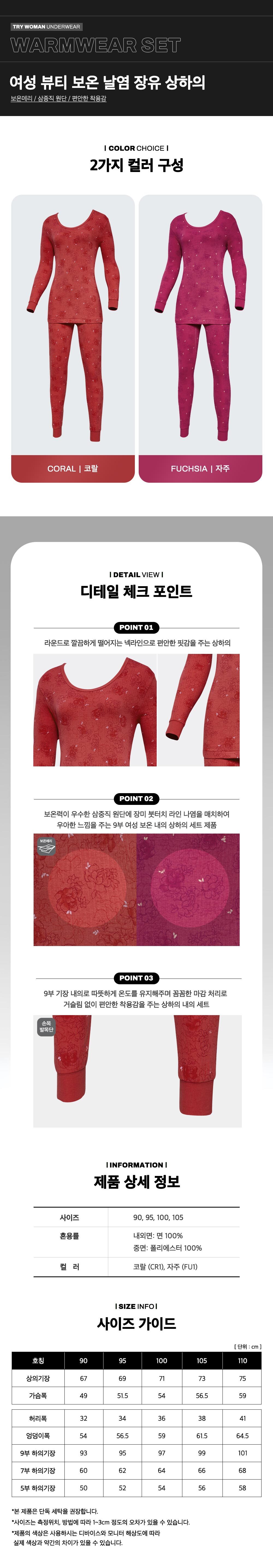 TRY 여성 뷰티 보온 날염내복 삼중직 여자 내의세트