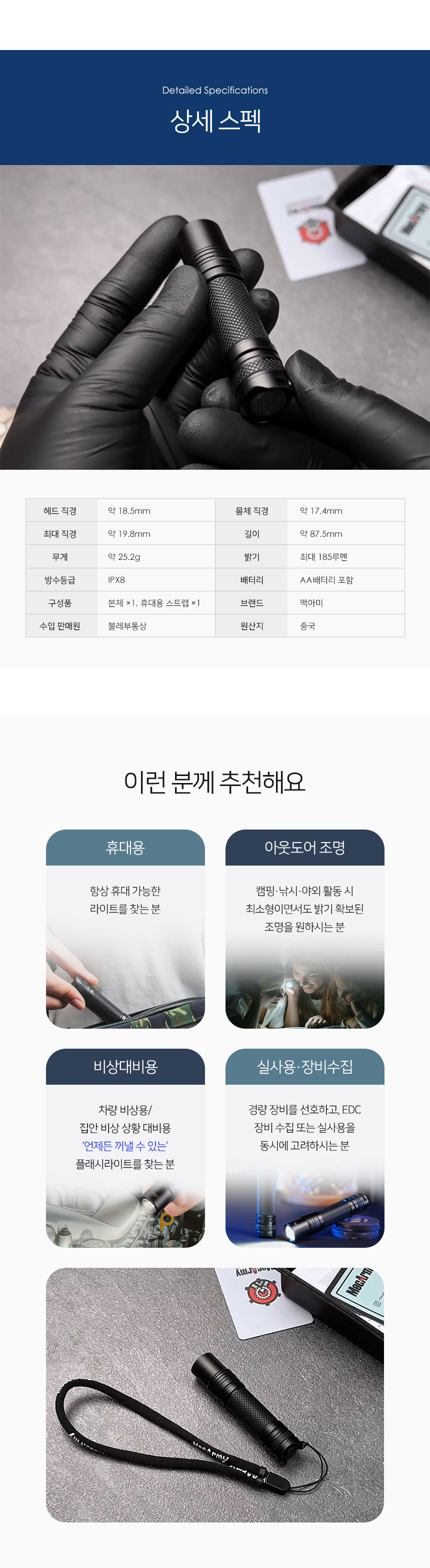 맥아미 PS05 알루 미니 AA 185루멘 플래시라이트