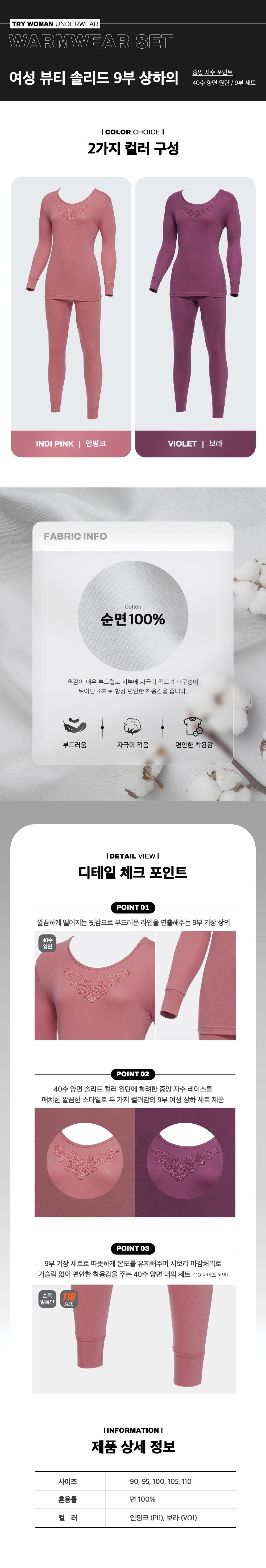 TRY 여성40수 자수포인트 여성내복 여자 내의세트