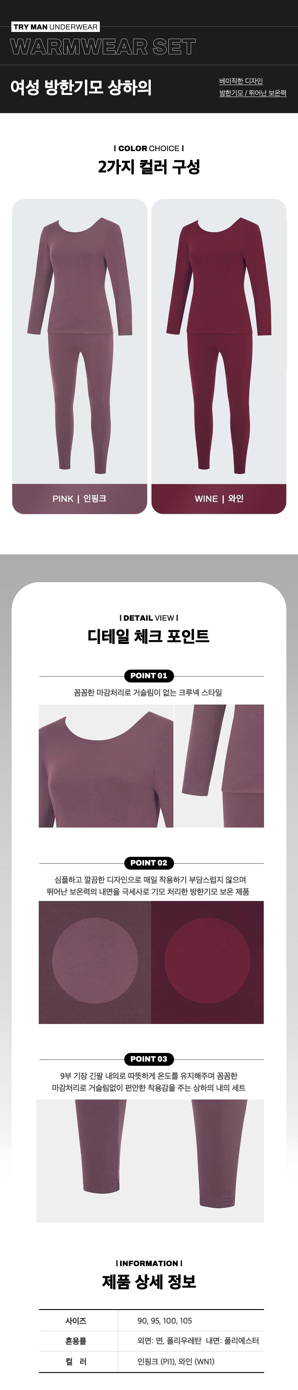 TRY 여성 방한 극세사기모 내복 여자내의 상하세트