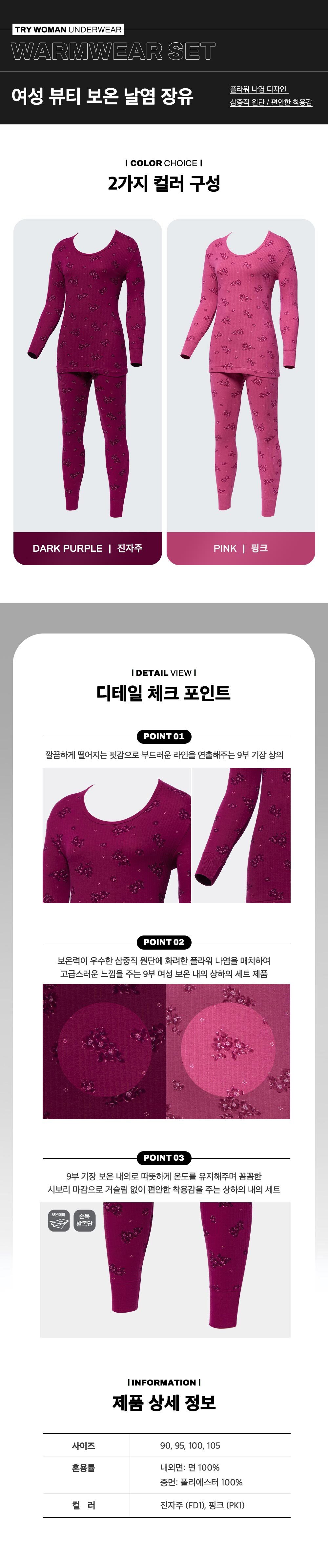 TRY 여성 뷰티보온날염 삼중직 내복 내의 상하세트