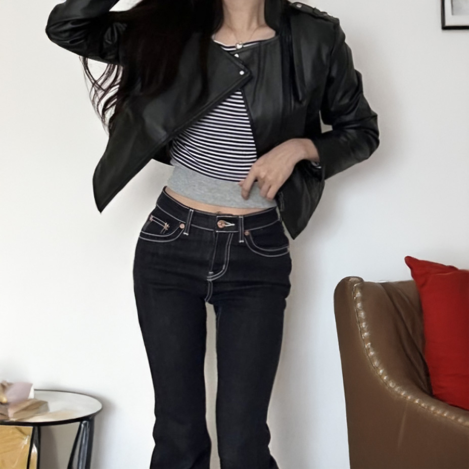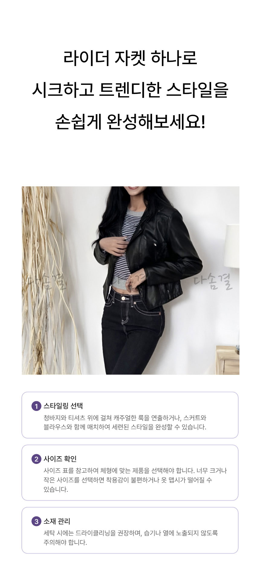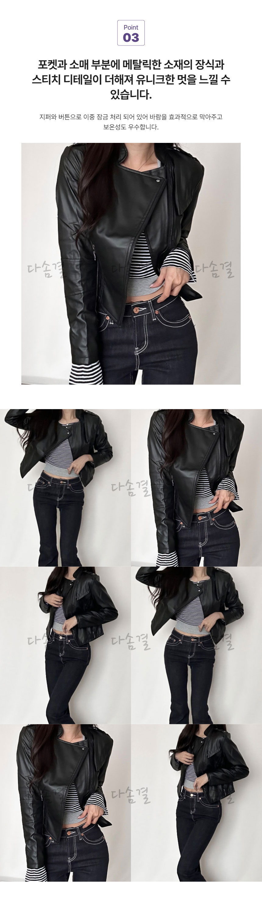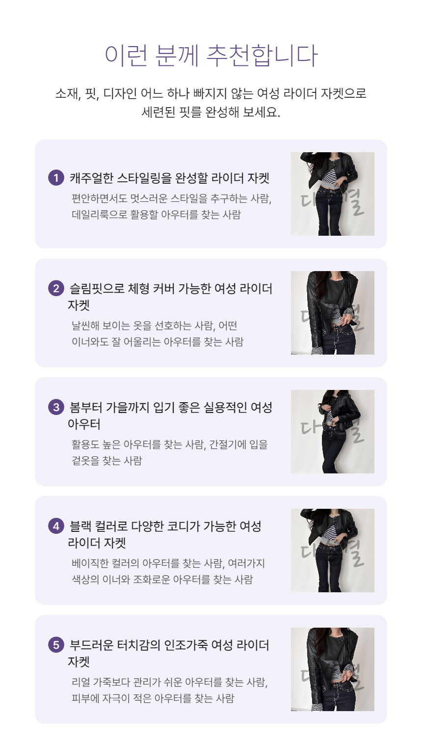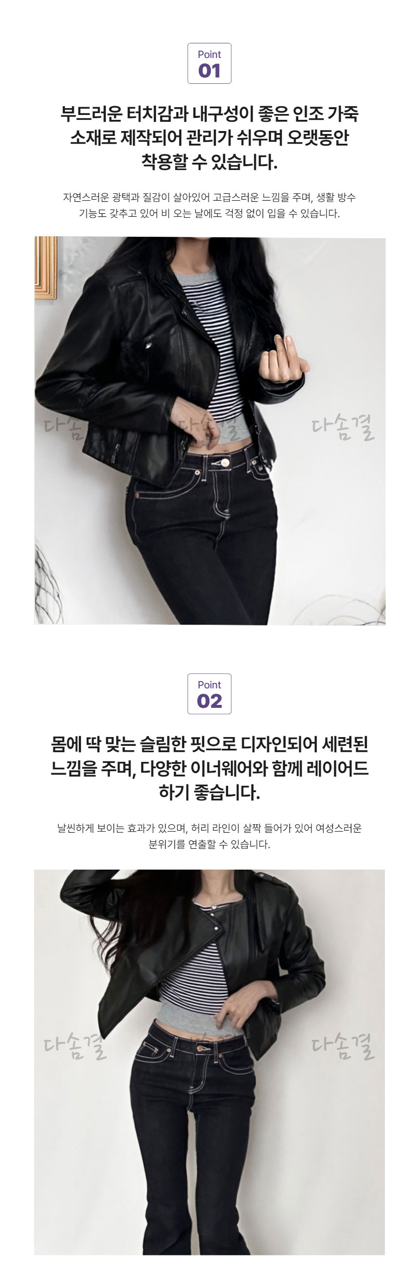 여성용 크롭 실루엣 레더 라이더 자켓다솜결