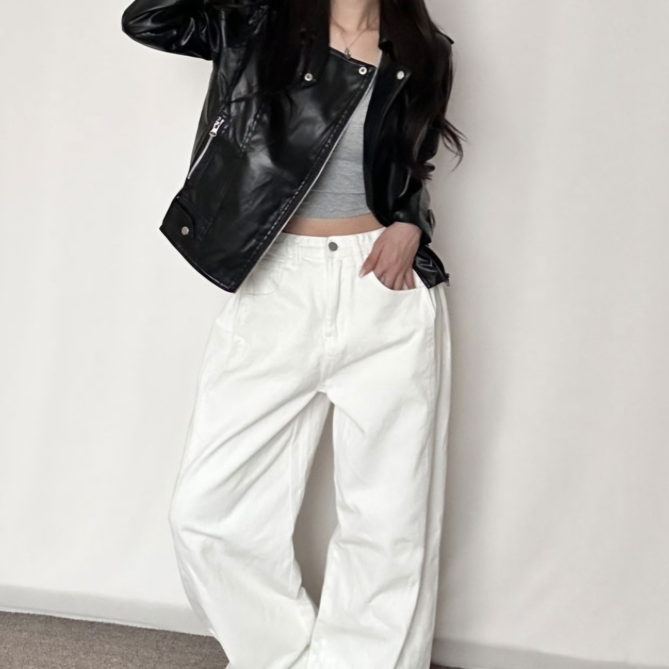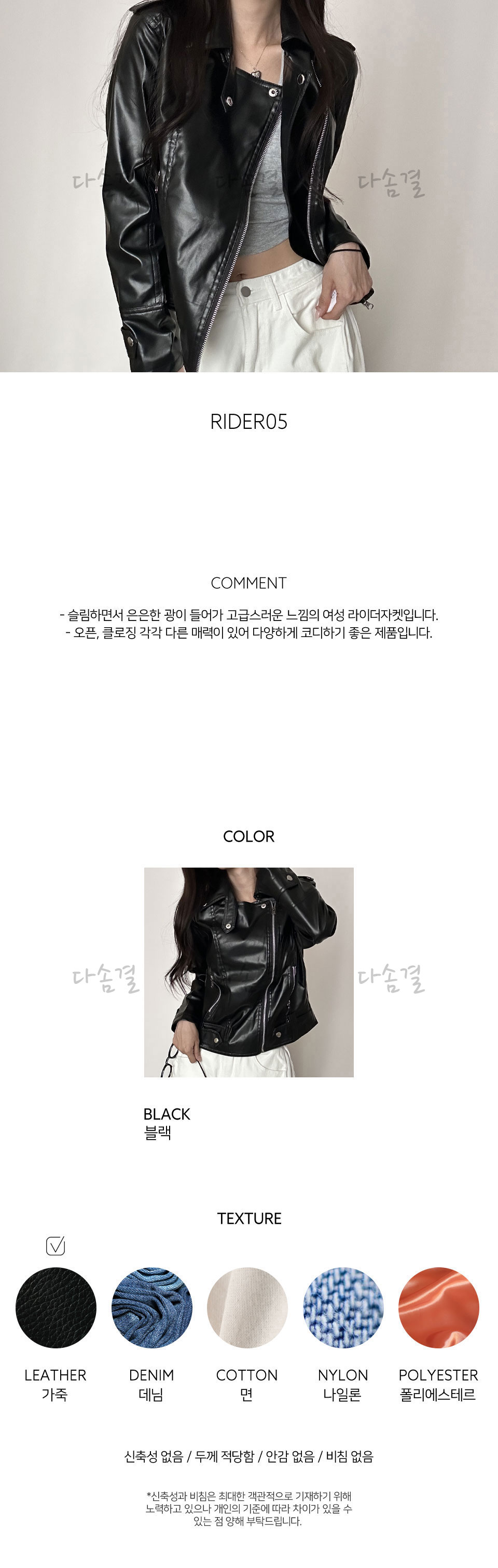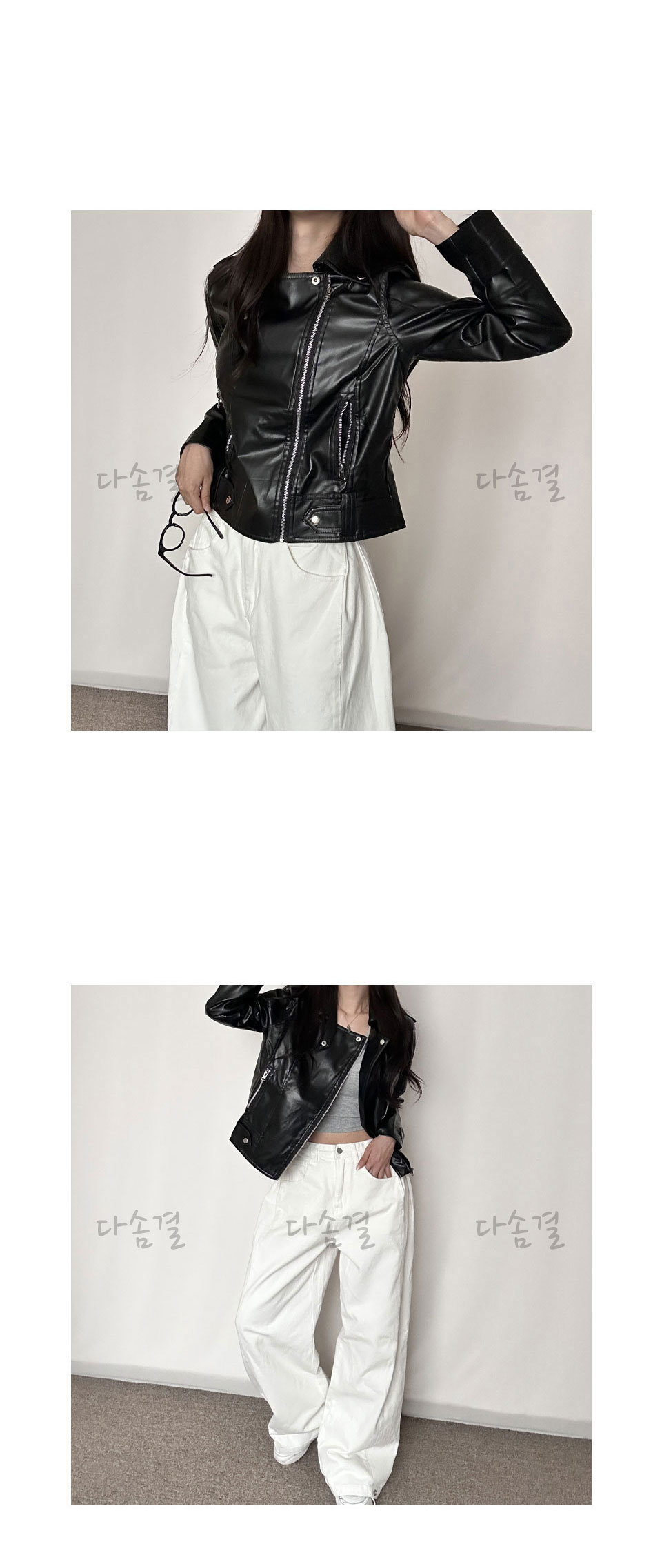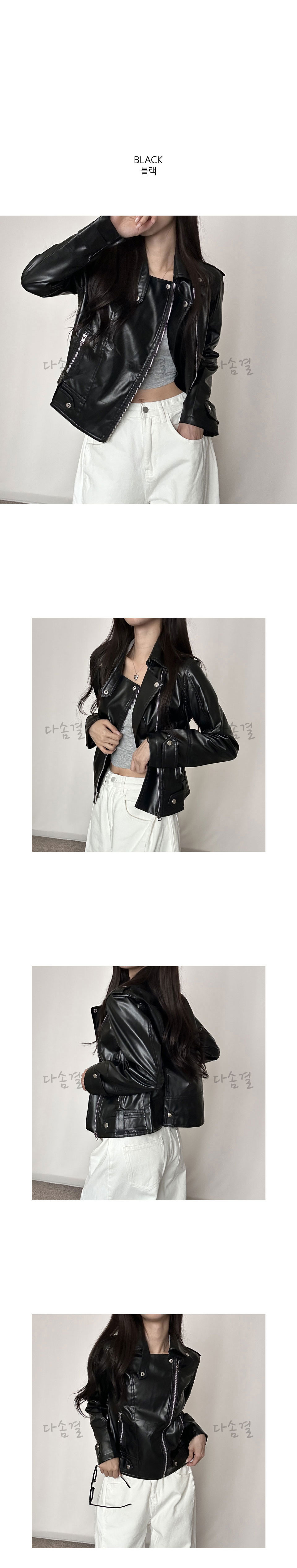 여성용 유광 가죽 크롭 라이더 자켓다솜결