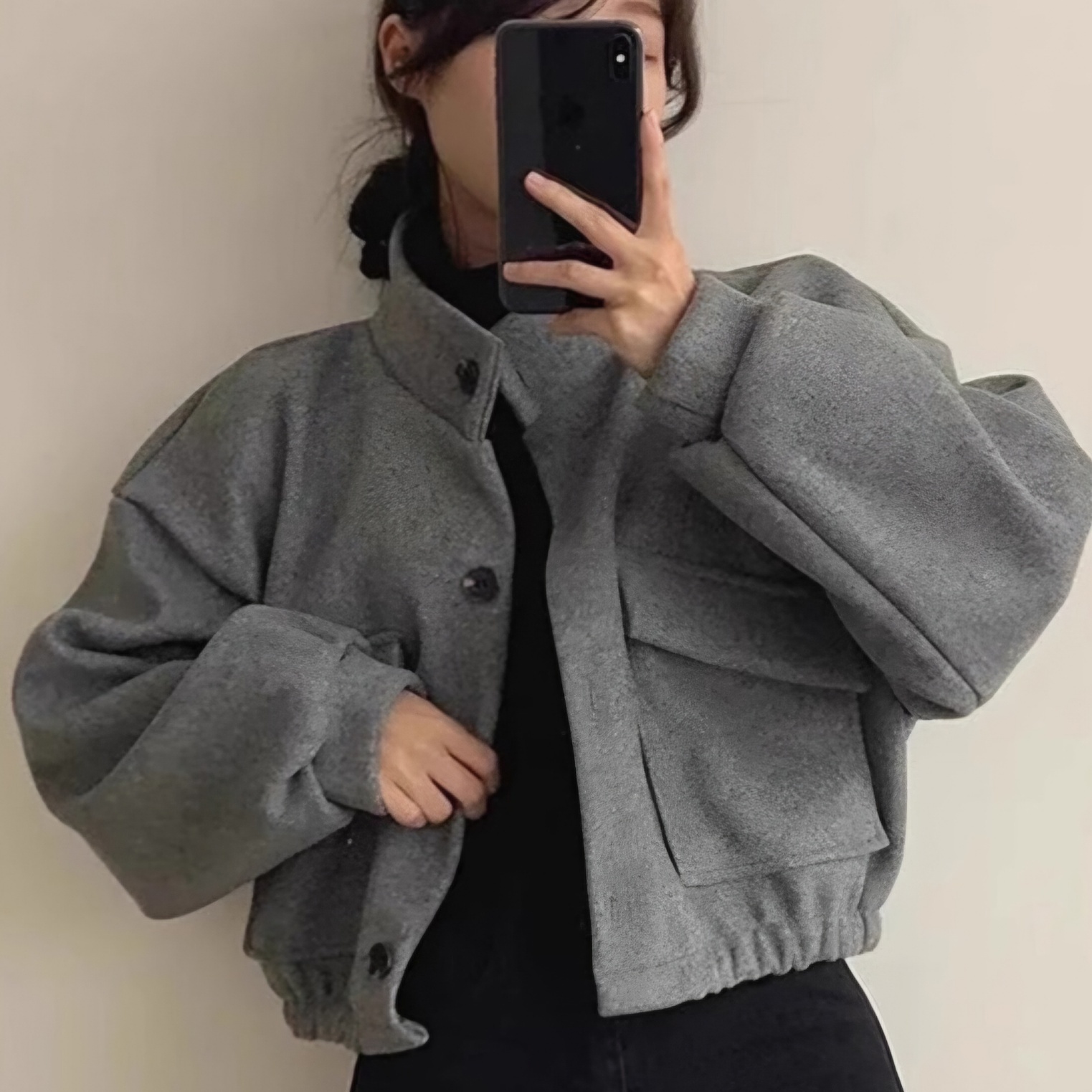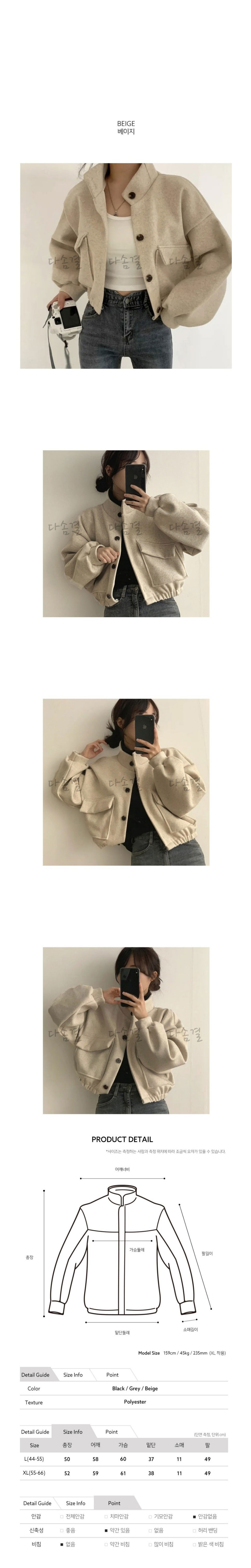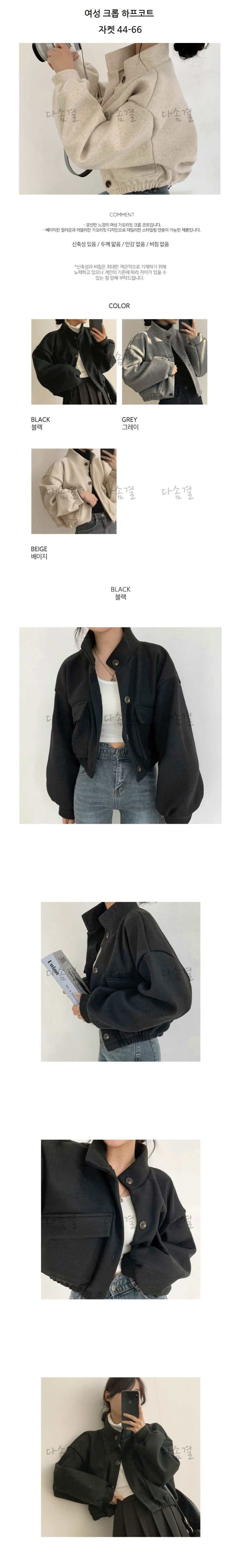 여성용 크롭 기장의 하프코트 스타일 자켓다솜결