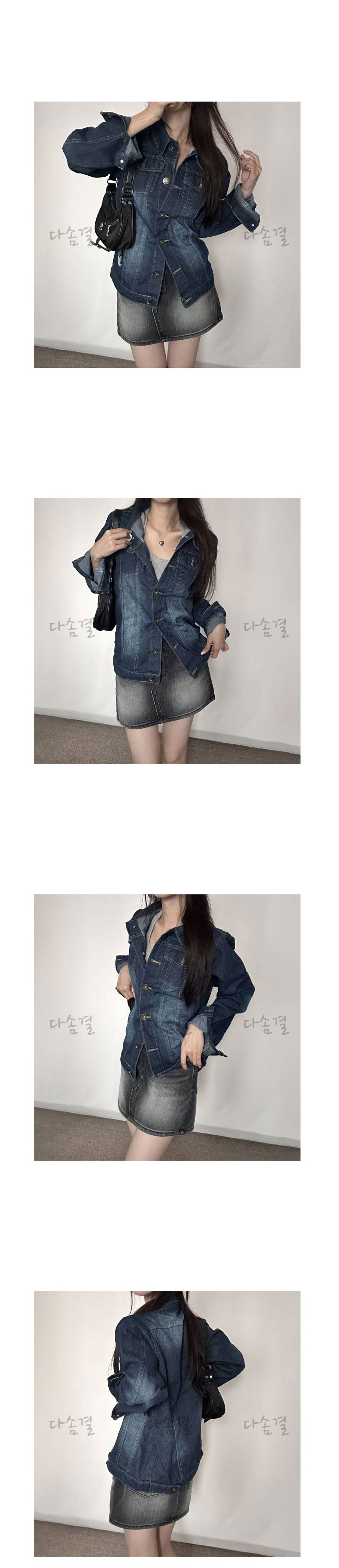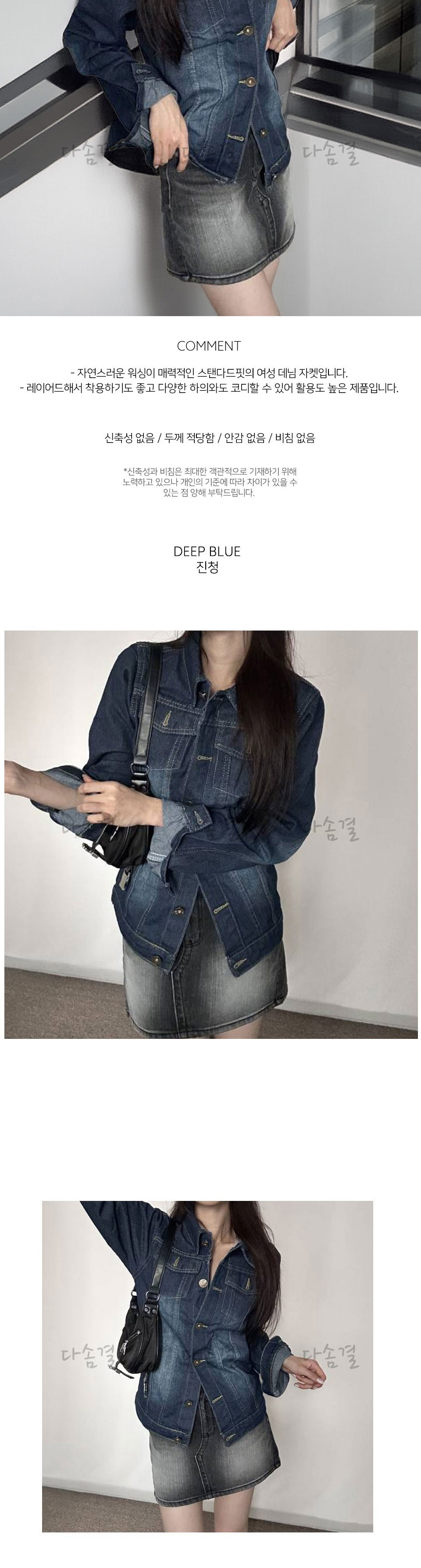 여성용 카라 장식 데님 재킷다솜결