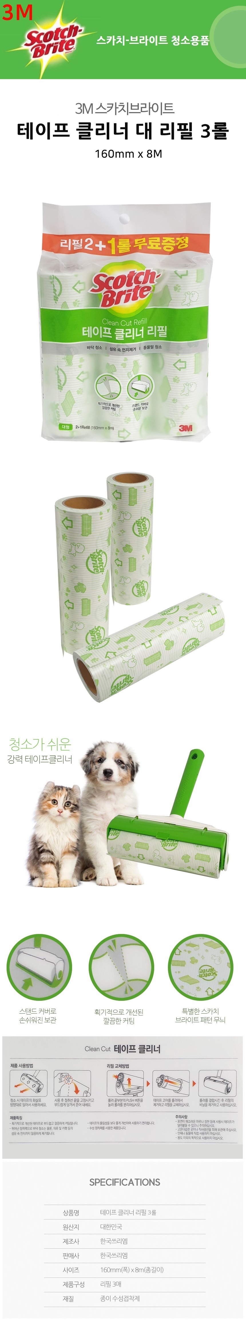 3M 강력 점착력 테이프클리너 16cmx8M 대 리필 3개
