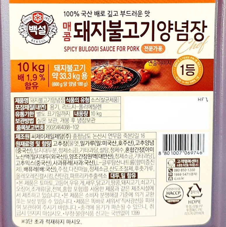 백설 매콤돼지 불고기 양념장 10k   상품  [ 1개 ]  단위로 판매하는 상품입니다 -
