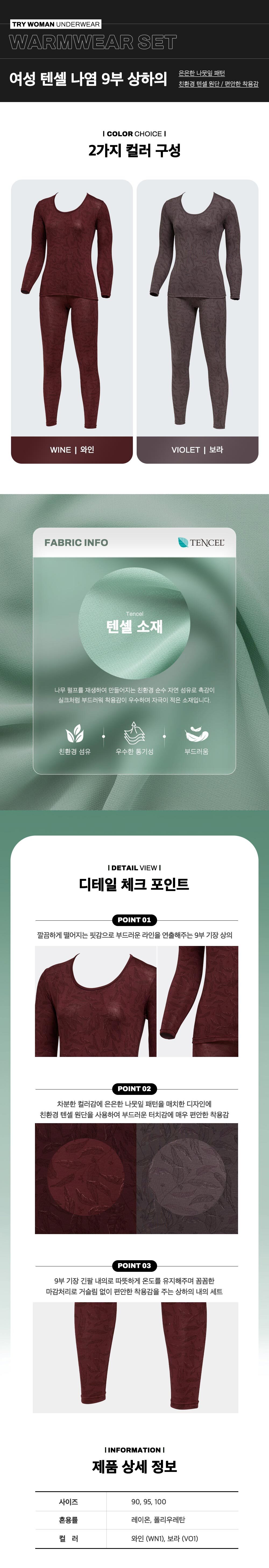 TRY 여성 모달원단 나뭇잎패턴 9부 내복 내의상의세트