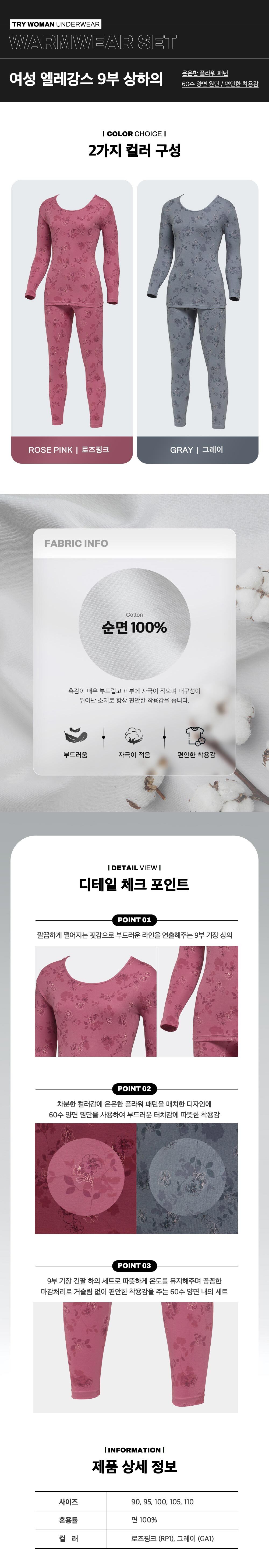 TRY 60수 은은한 플라워나염 여성9부 내복 내의세트