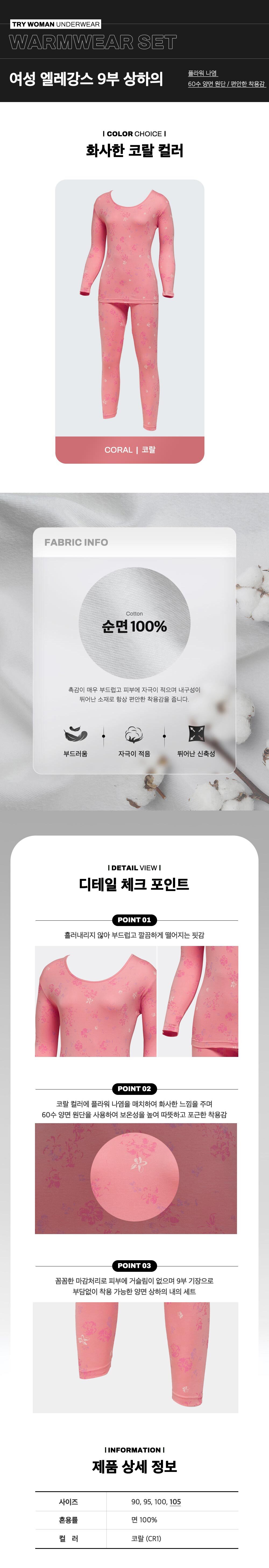 TRY 순면100 플라워나염 60수 여성9부 내복 내의세트