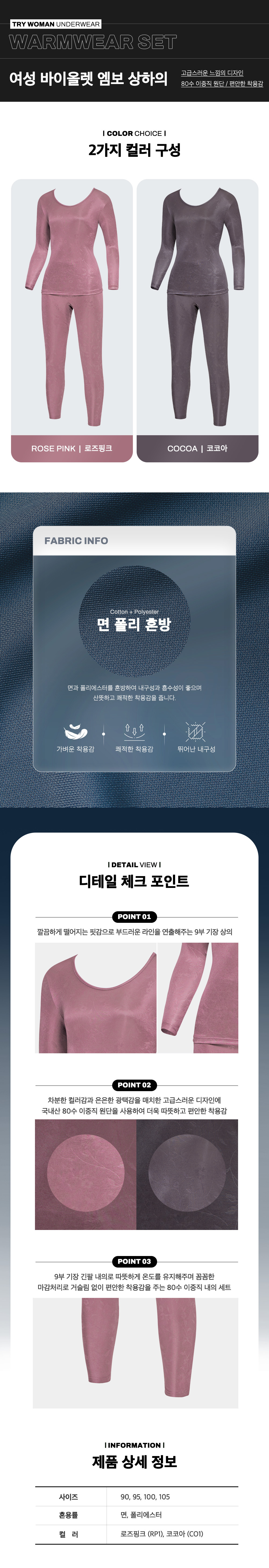 TRY 80수 이중직 면폴리혼방 여성9부 내의세트