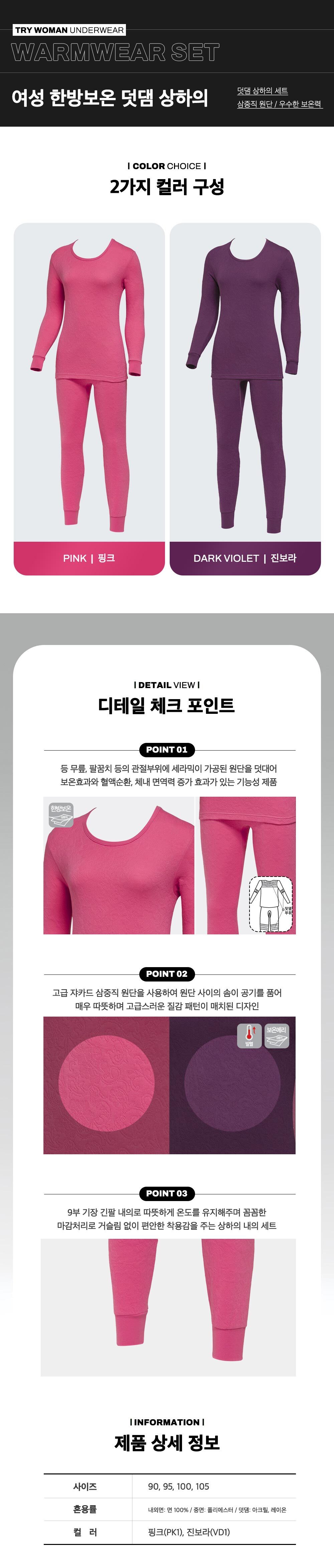 TRY 삼중직 한방 덧댐 보온메리 여성9부 내의세트