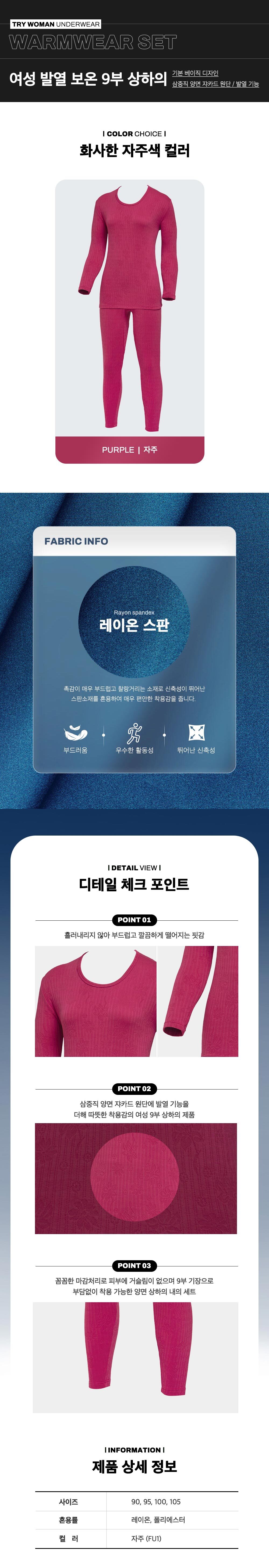 TRY 삼중직 양면 자카드 여성 9부 상하의 내의세트