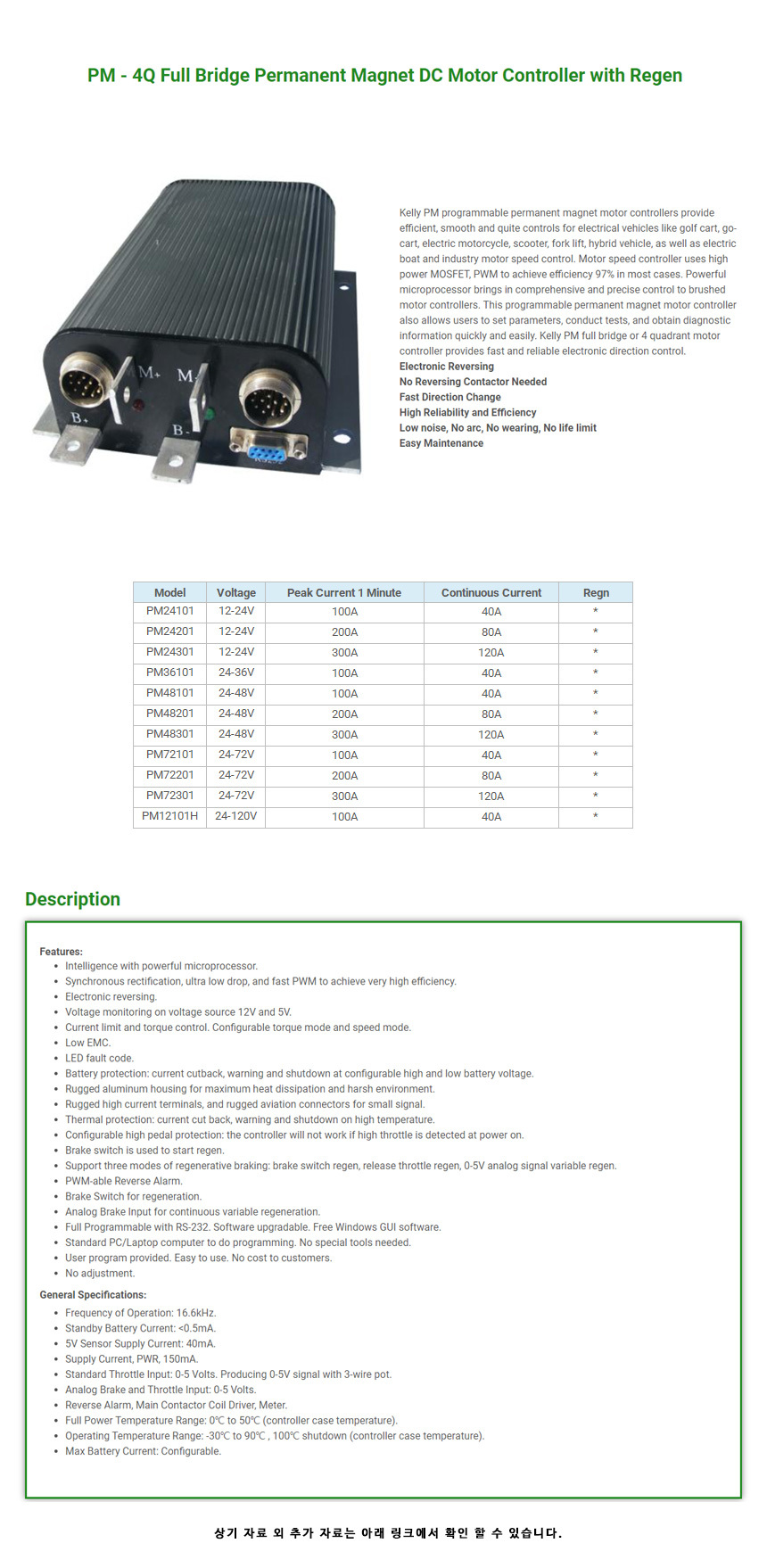 Kelly 4Q 풀브리지 PM DC 모터 컨트롤러 회생제동 24V-72V 120A (PM72301)
