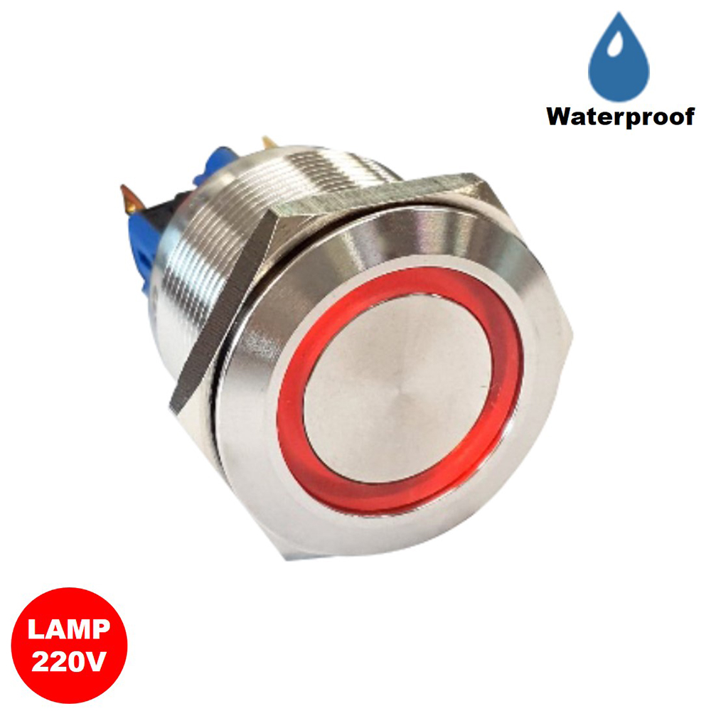 6핀 푸쉬락 방수 메탈 스위치 220V 링LAMP 빨간색 ON-ON 25mm (HAS5122)