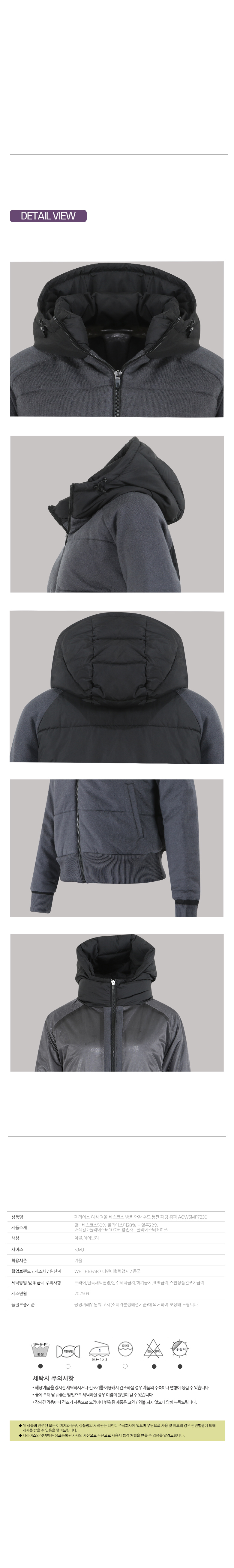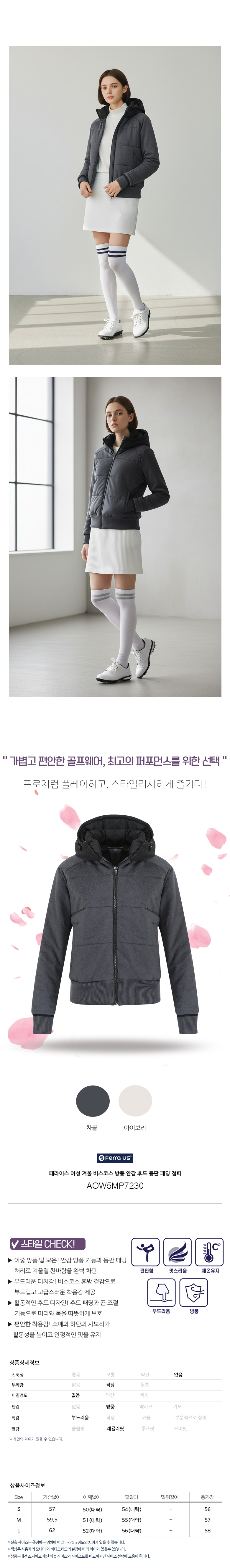 페라어스 여성 겨울 비스코스 방풍 안감 후드 등판 패딩 점퍼 AOW5MP7230