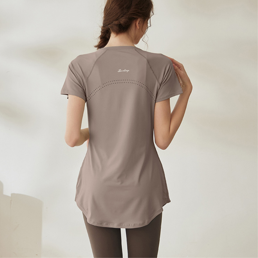 휴앤핏 힙커버 요가 필라테스 롱기장 스포츠 반팔 티셔츠 운동복