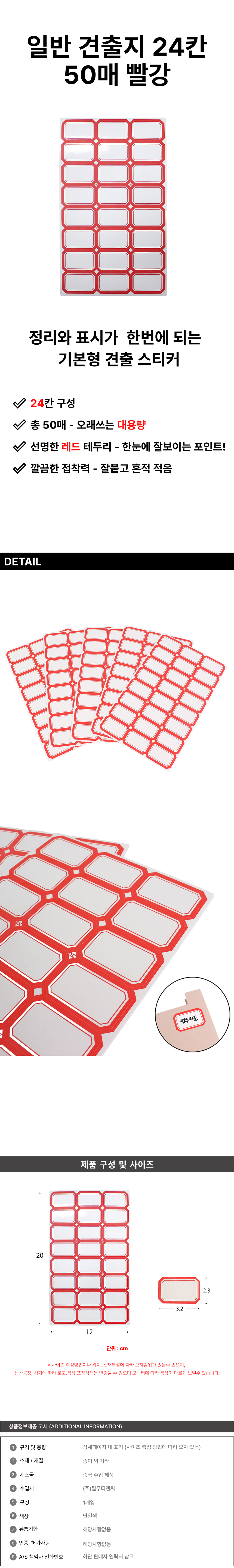 일반 견출지 24칸 빨강 50매