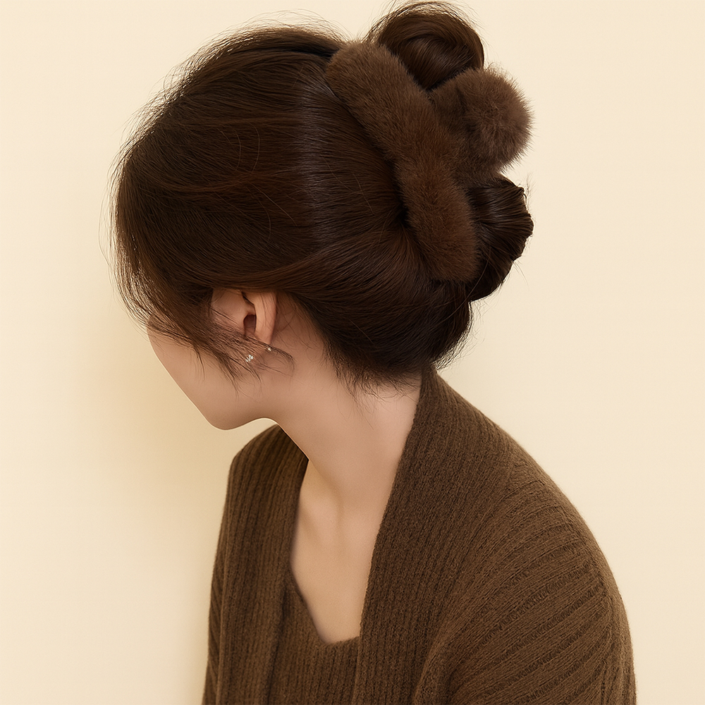 복슬밍크 헤어핀 집게핀 반묶음 헤어악세사리 진갈색