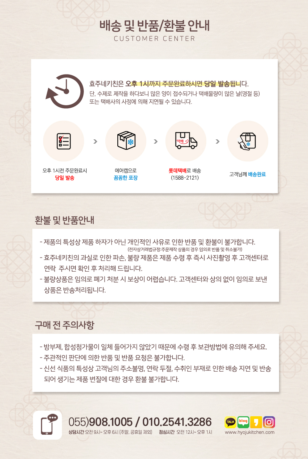 1. 오배송/ 불량/ 파손의 경우 왕복배송비는 판매자가 부담합니다.